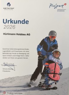 Mit grosser Freude unterstützt Hürlimann Holzbau AG PluSport auch im Jahr 2026