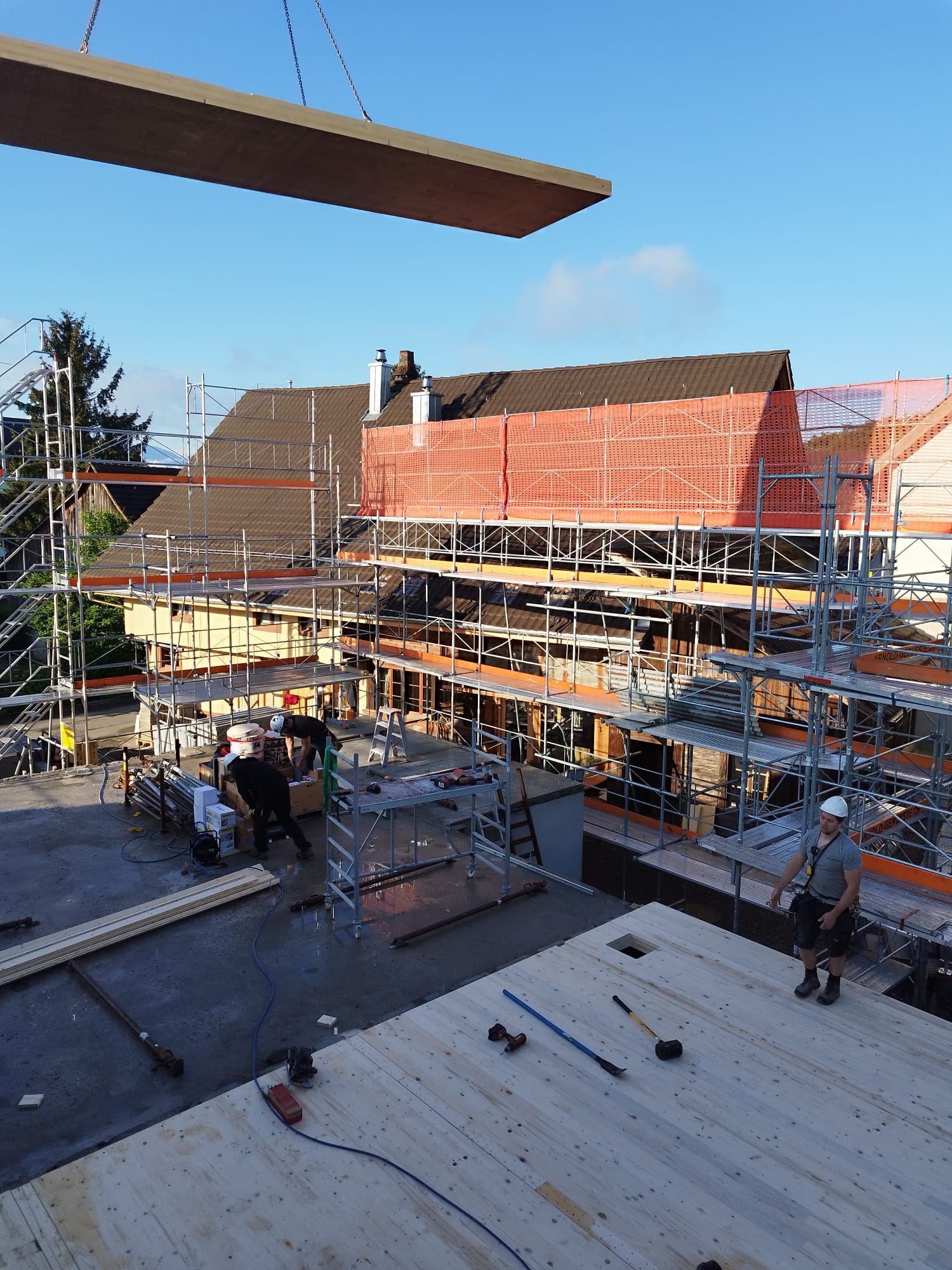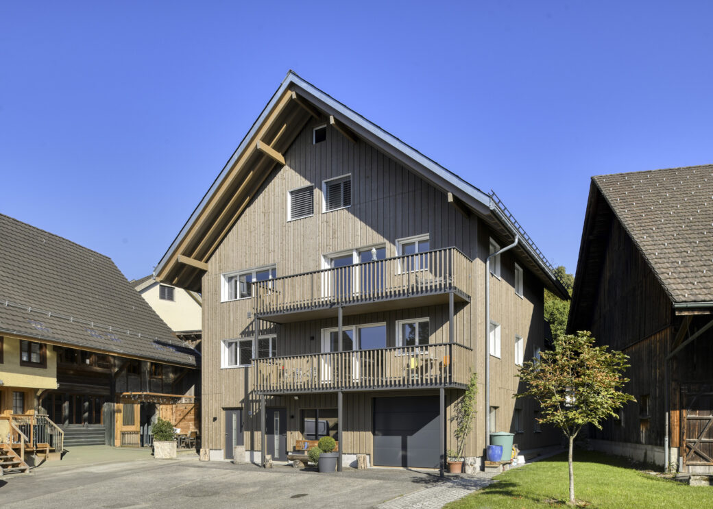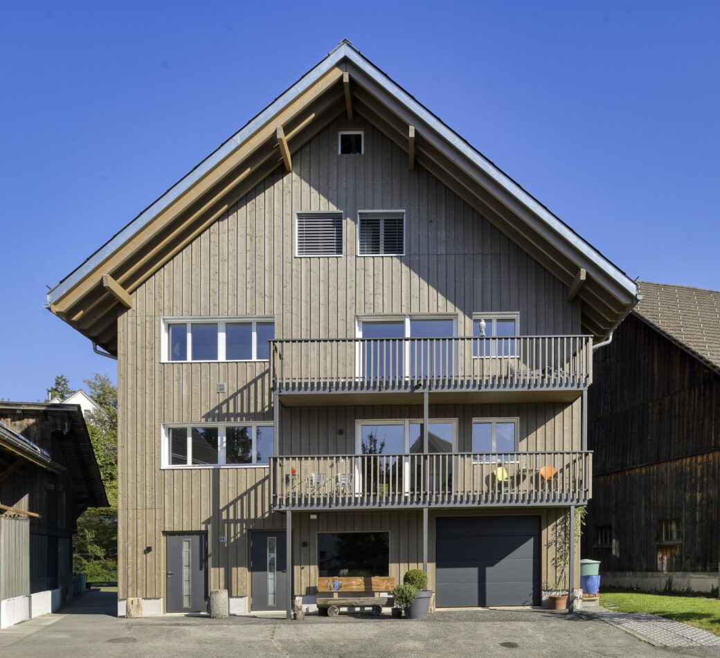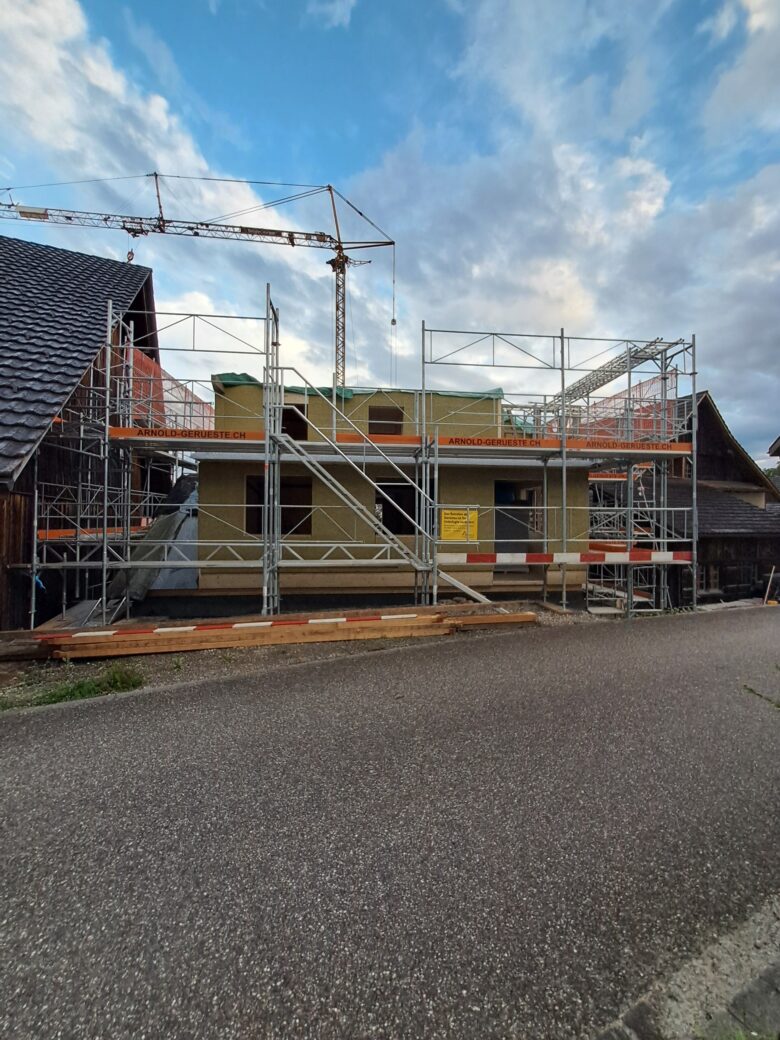 Aufstockung Oberdorfstrasse, Knonau Leistungen Baueingabe Detail- & Ausführungsplanung Elementbau Alu-Fensterzargen Balkon- Terrassengeländer Projektdaten Neubau Aussentreppen Baujahr 2023-2024 Architekt / Bauleiter Ernst Schindler