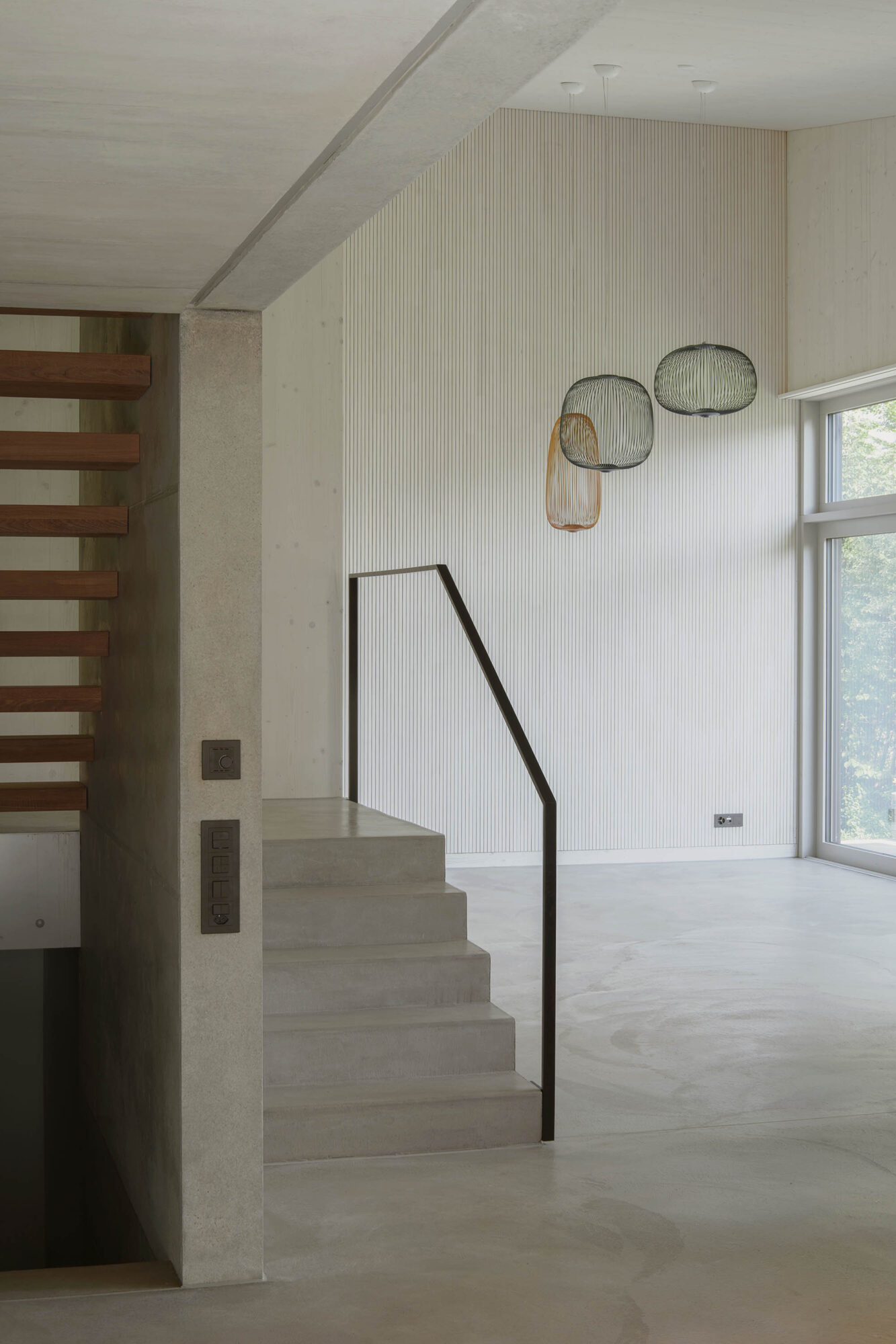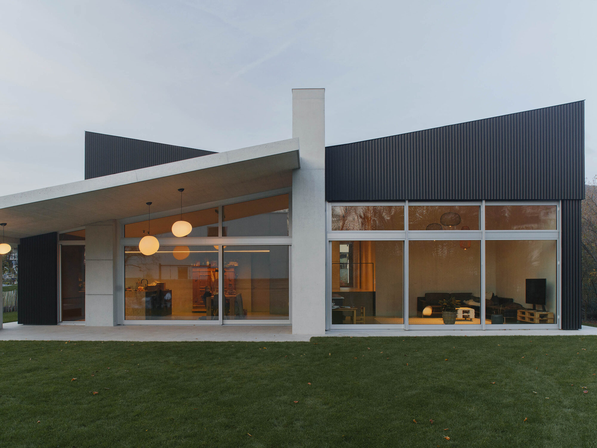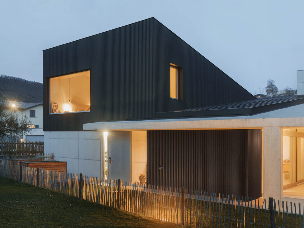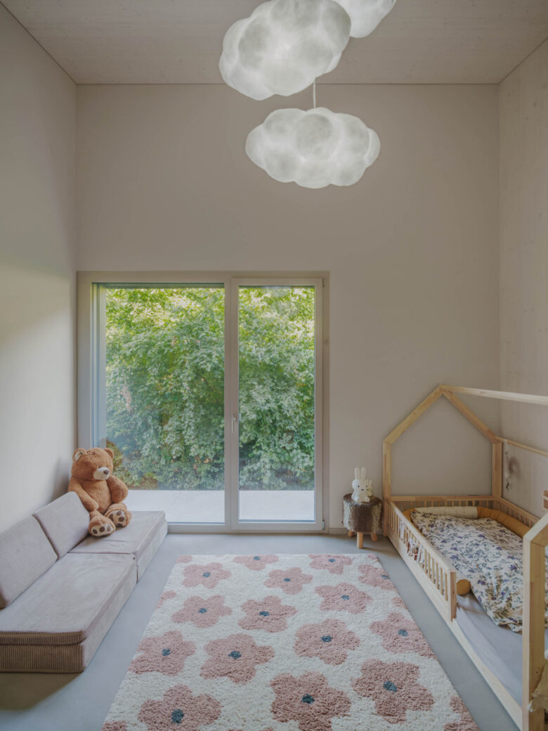 Neubau EFH, Kilbigstrasse, Erlinsbach Leistungen Planung & Ausführung Holzelementbau Massaufnahme mit Tachymeter Projektdaten 2-geschossiger Holzelementbau Sichtbare Wandelemente Deckenpaneelen Baujahr 2024-2025 Architekt / Bauleiter Studiotho GmbH