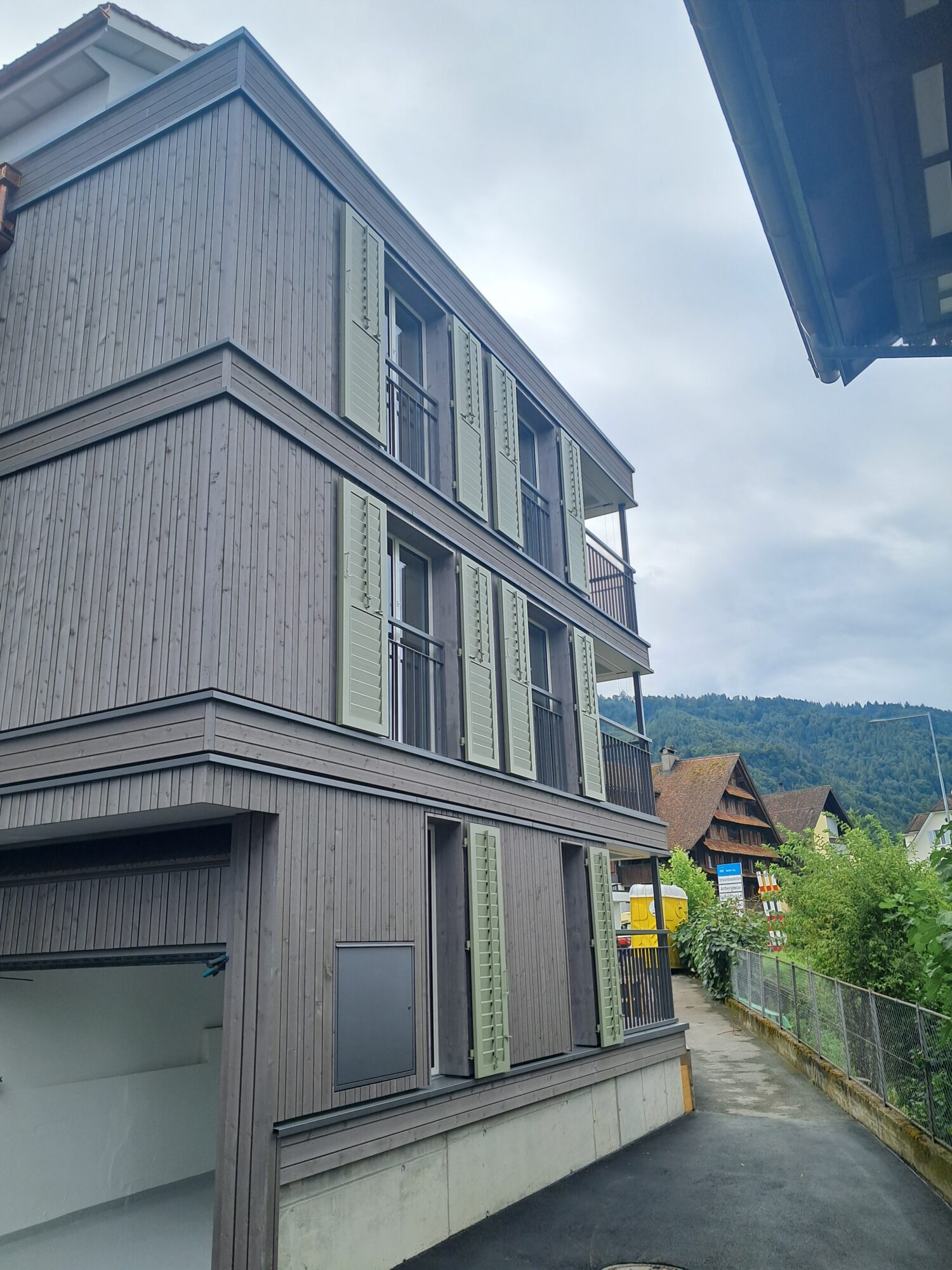 3-geschossiger Hybridbau mit Attikageschoss in Holzbau