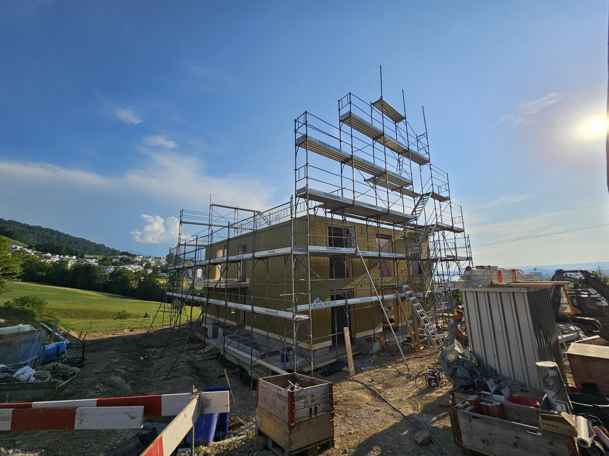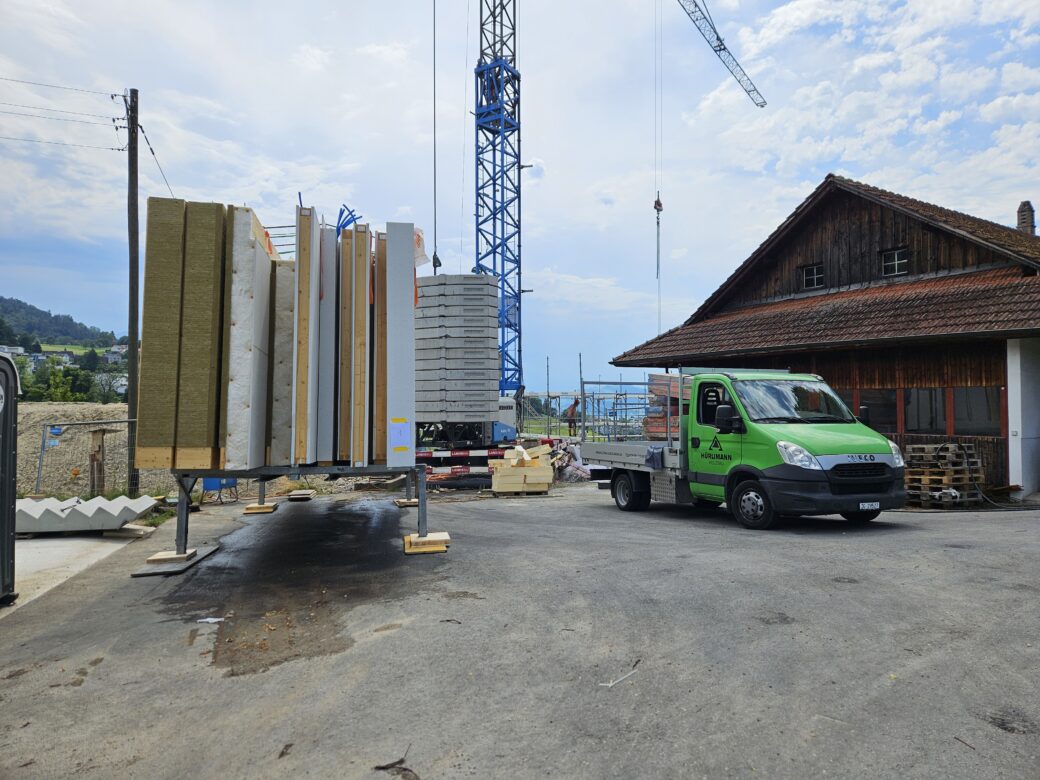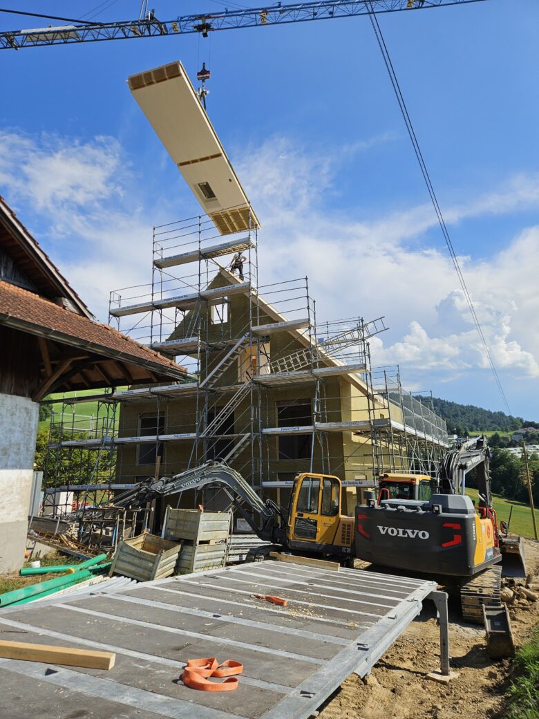 Aufrichtarbeiten 3-geschossiger Holzelementbau vom 11.08.2025 bis 13.08.2025