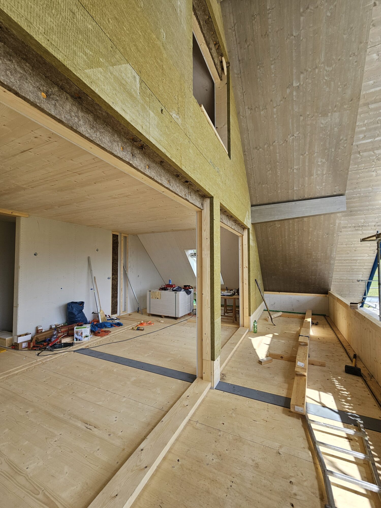 Aufrichtarbeiten 3-geschossiger Holzelementbau vom 30.06.2025 bis 03.07.2025