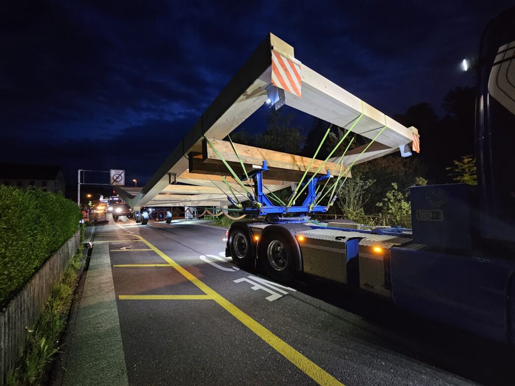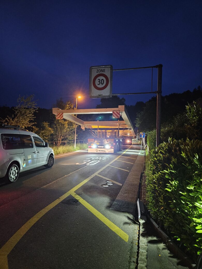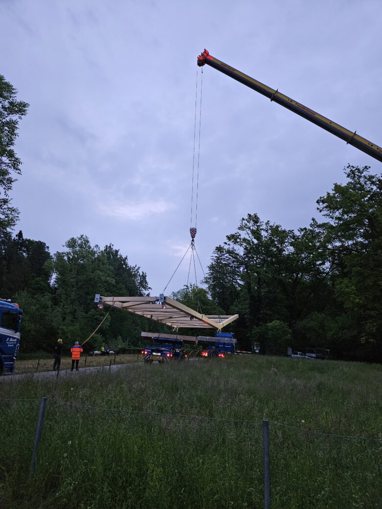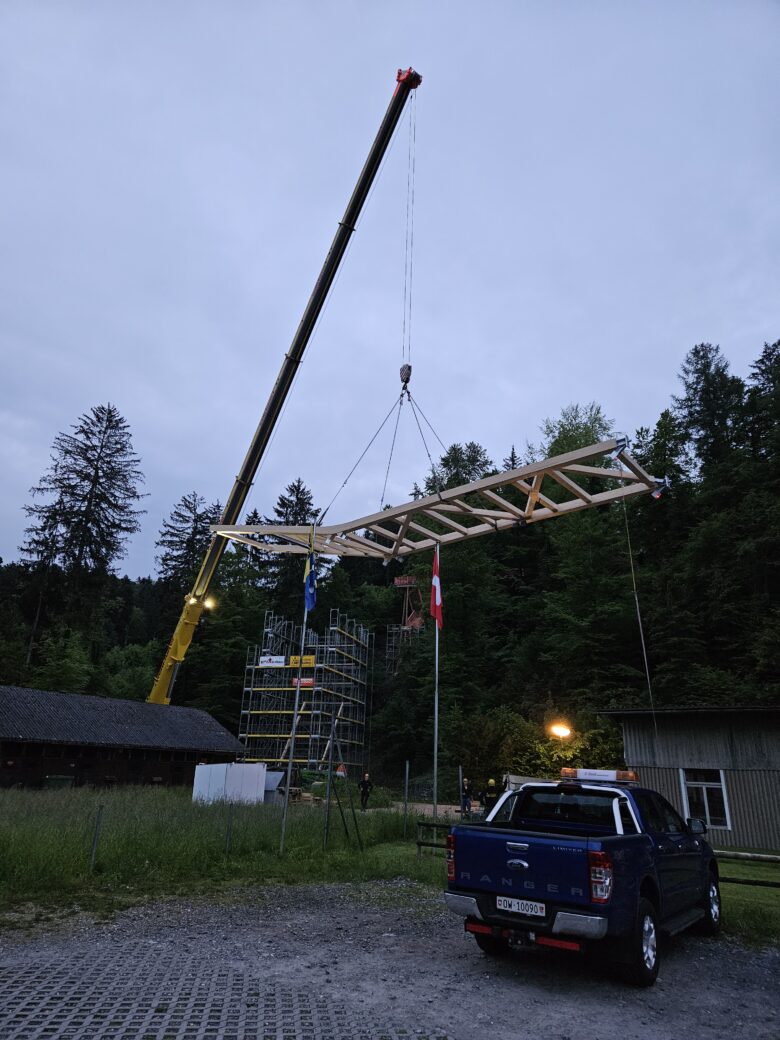 Die Aufrichtarbeiten am Schlaufensteg in Baar sind in vollem Gange!