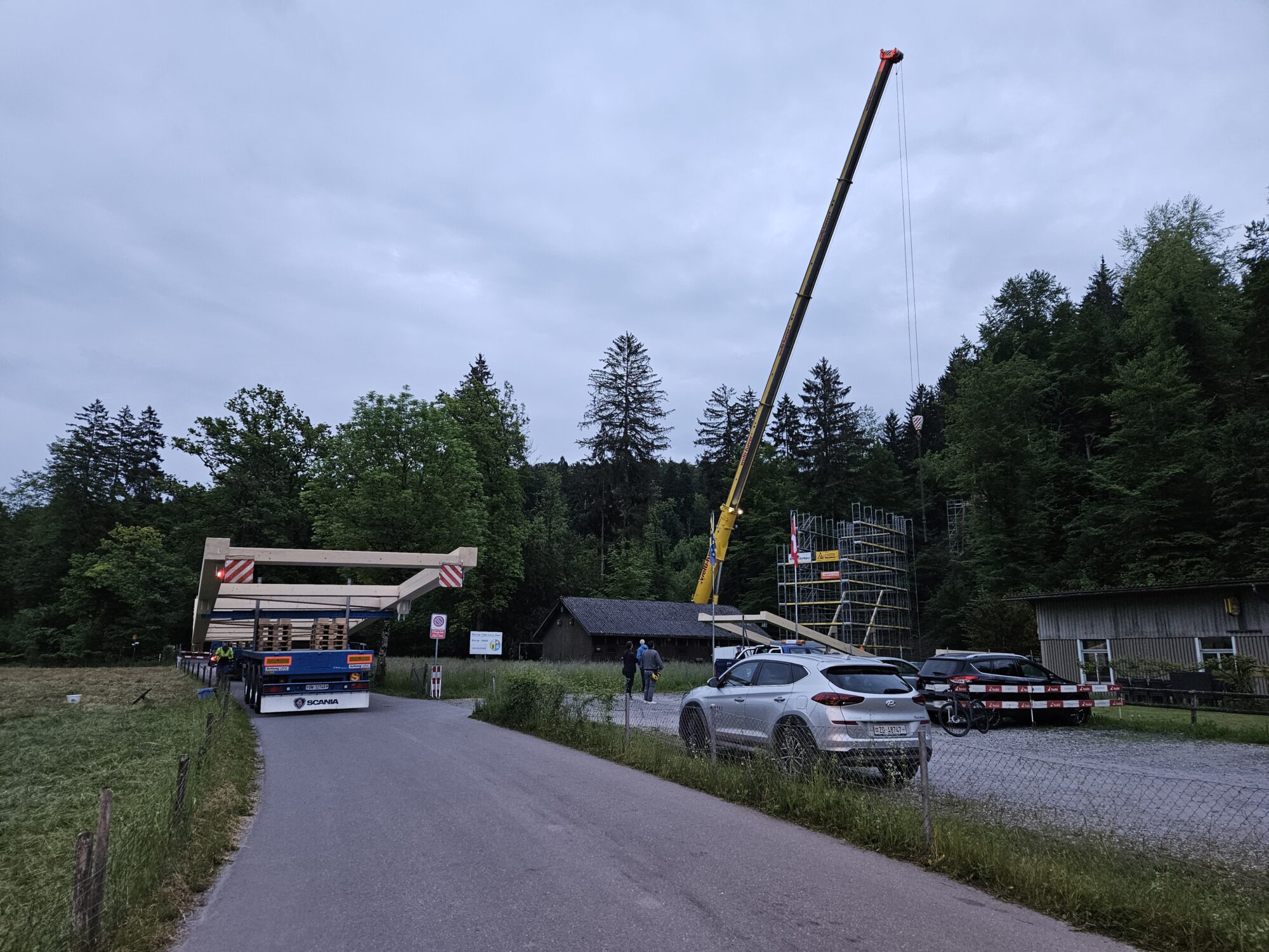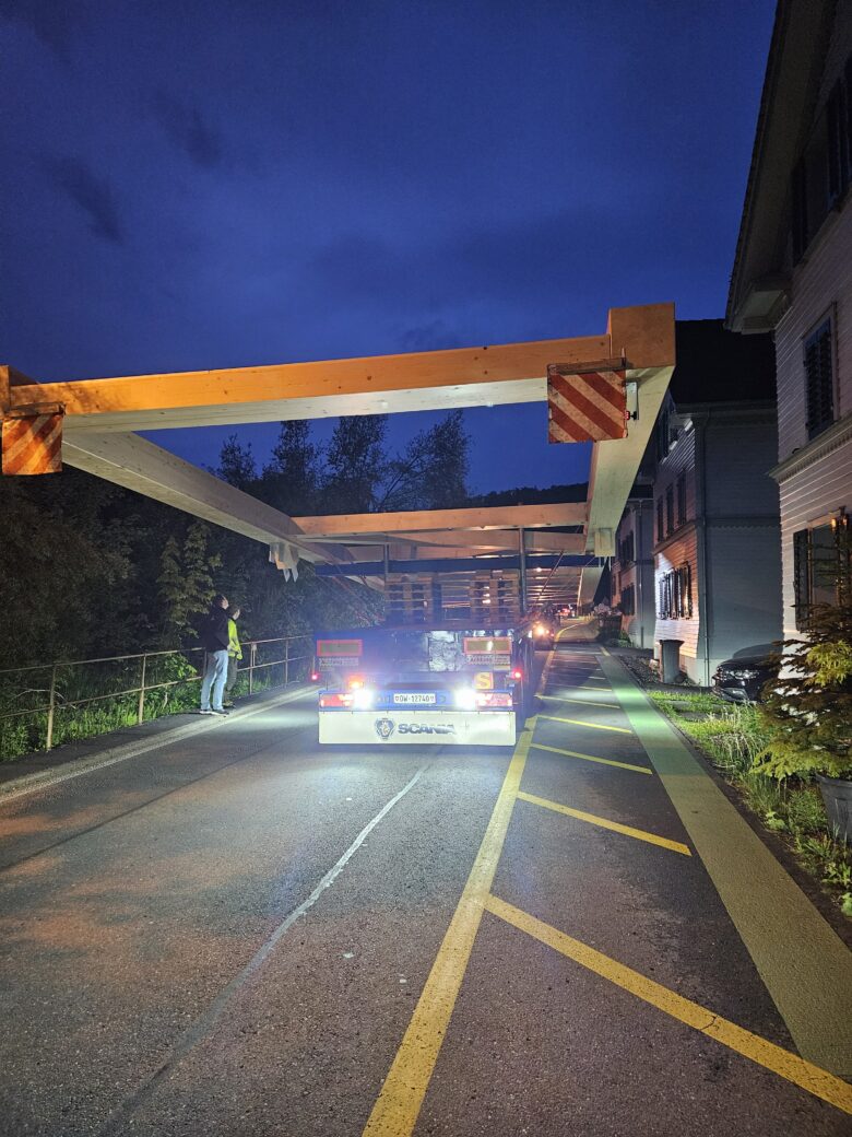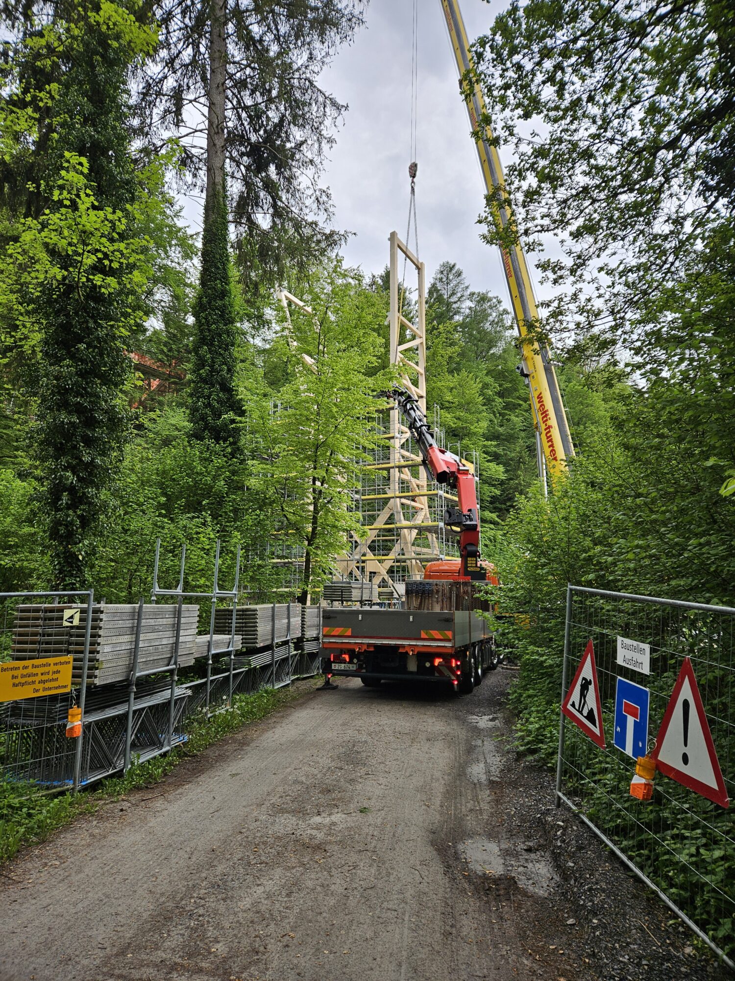 Die Aufrichtarbeiten am Schlaufensteg in Baar sind in vollem Gange!