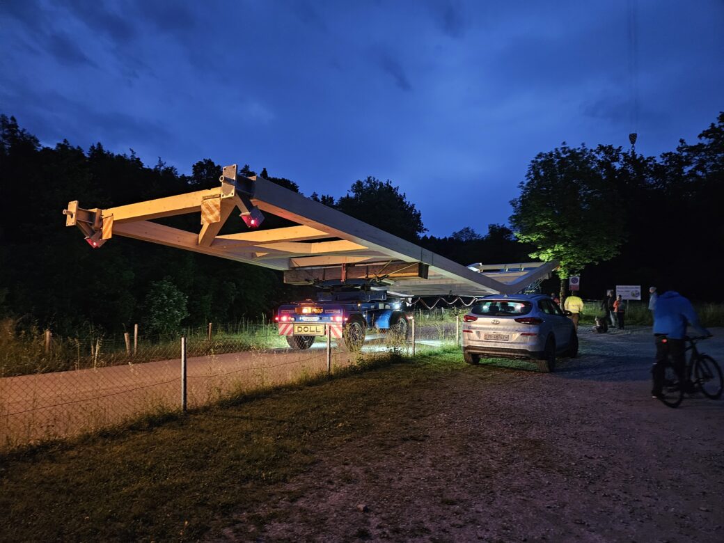 Weitere Fotos zu den Aufrichtarbeiten sowie nächtlicher überdimensionaler Transport